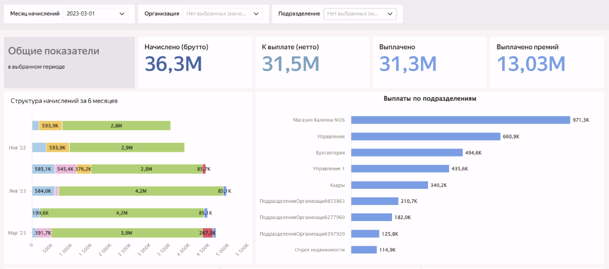 Посмотрите живое демо: https://datalens.ru/x9refr9wfccwi-zup-dashbord