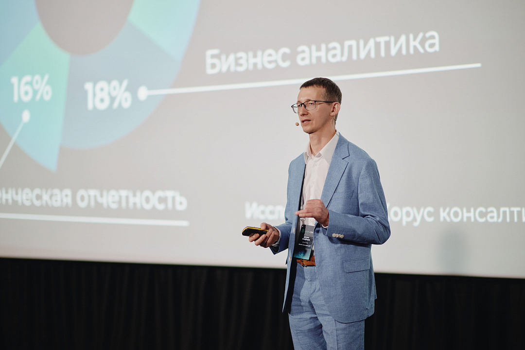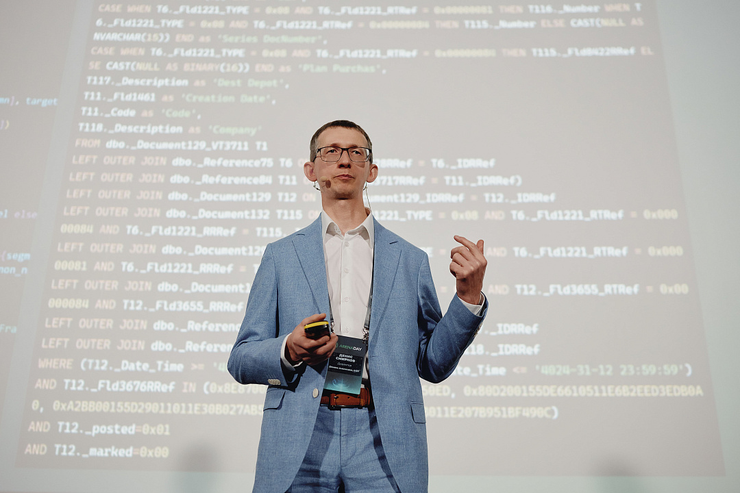 Выступление Дениса Смирнова было сосредоточено на практической проблеме рынка: невозможности оперативной аналитики при работе с 1С и перегруженности разработчиков.