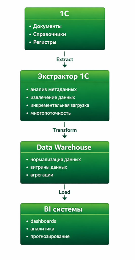 Фактически разработчики сталкиваются с ситуацией, когда из базы данных 1С невозможно напрямую построить аналитическую модель без дополнительного слоя обработки.
