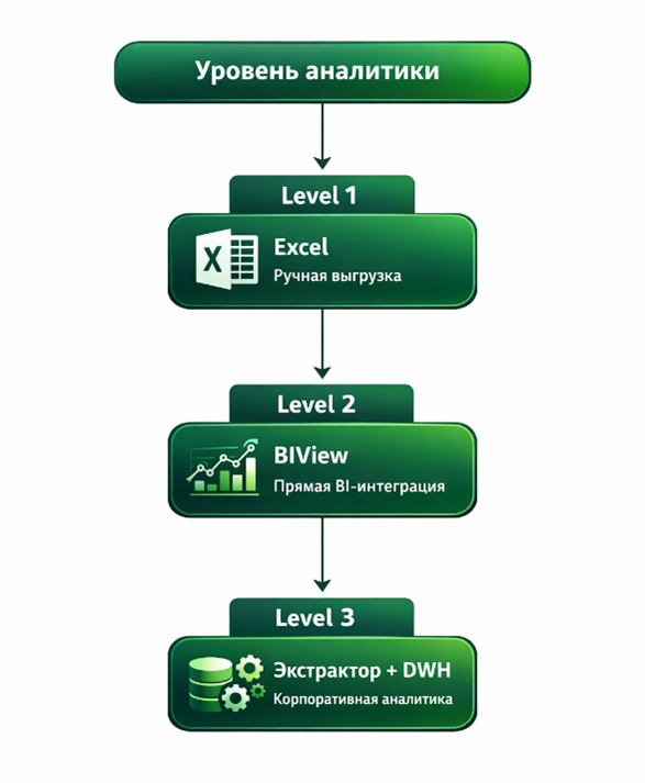 - сложность интеграции с BI