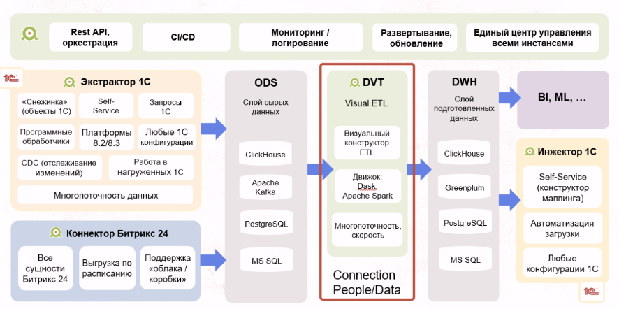 Мы протестировали десятки подходов, инструментов, платформ — и создали продукт, который соответствует задачам современного рынка данных вокруг 1С.