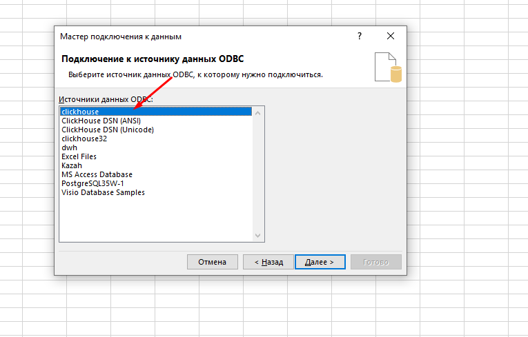 - Установить ClickHouse ODBC Driver, чтобы получить доступ к базе данных в качестве источника данных.