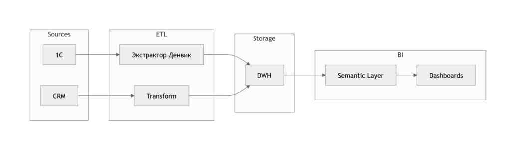 - SLA обновления: финансы — 1 раз в день, продажи — каждые 2 часа