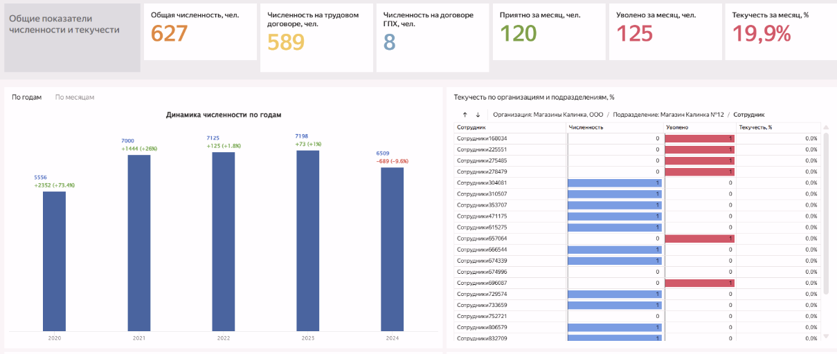 Например, видно, что в одном из подразделений высокая текучесть — это повод моментально реагировать.