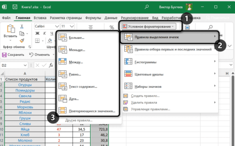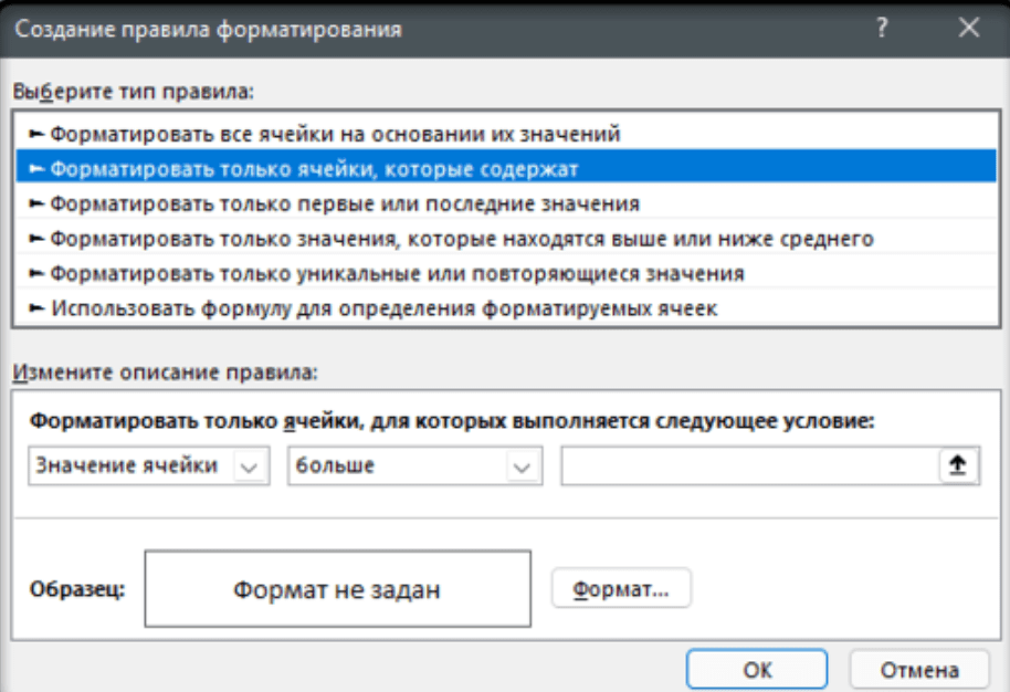 Условное форматирование