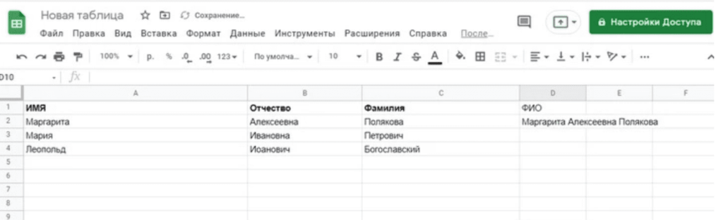 Сцепить. Позволяет объединить текстовые данные из разных столбцов в общую строку. Удобный функционал для работы с именами сотрудников, студентов или для сложных названий продукции.