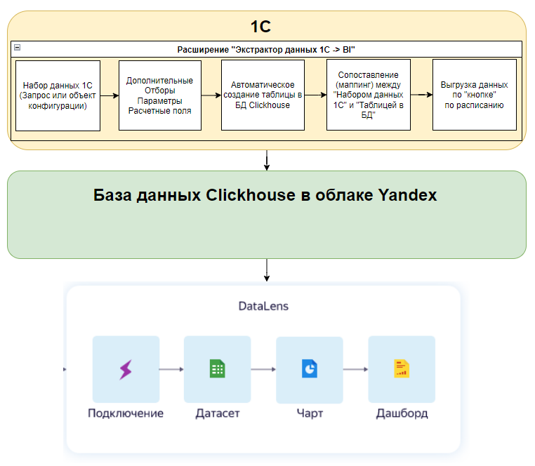 Выгрузка из 1С в Yandex Datalens работает так: