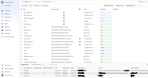 При необходимости, переименуйте выгружаемые поля (в те именования, которые будут видны уже на стороне Yandex Datalens).