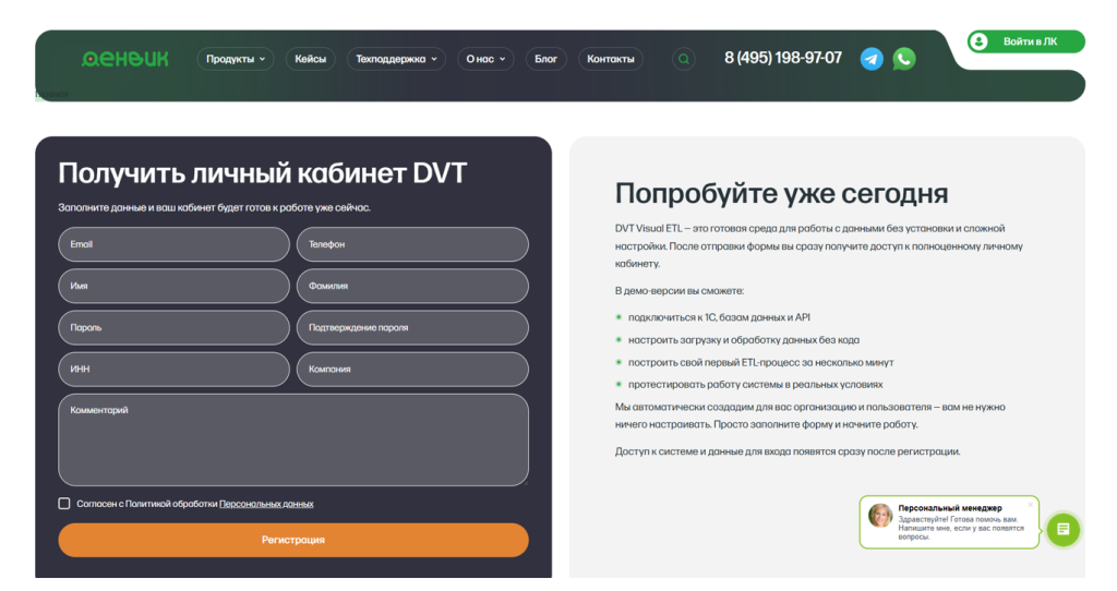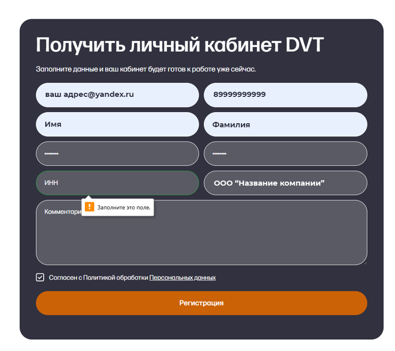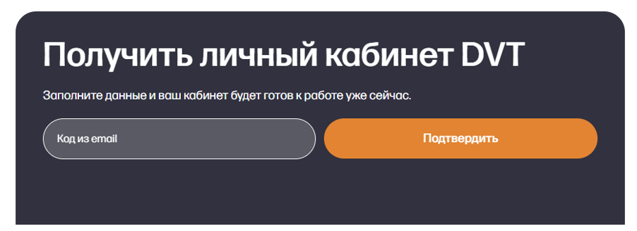 Мы находимся на странице получения личного кабинета DVT для дальнейшего тестирования