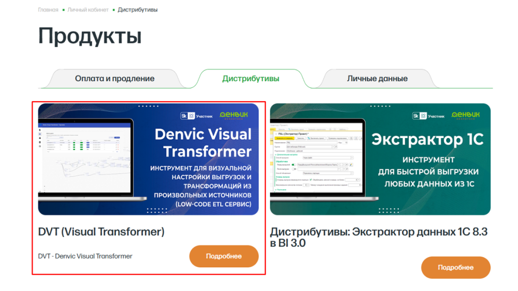 На вкладке дистрибутивы Вам будет доступен и открыт доступ к Denvic Visual Transformer