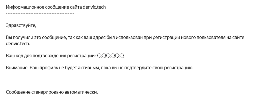 Отсюда нам нужно взять код подтверждения регистрации.