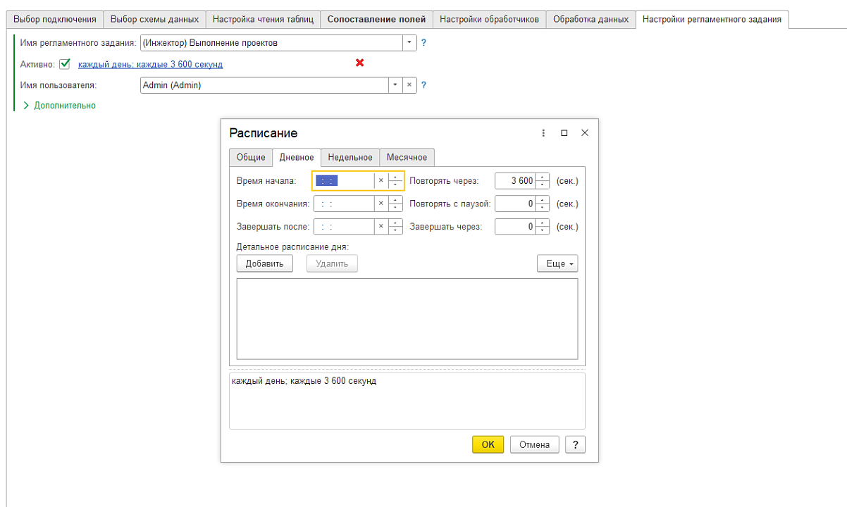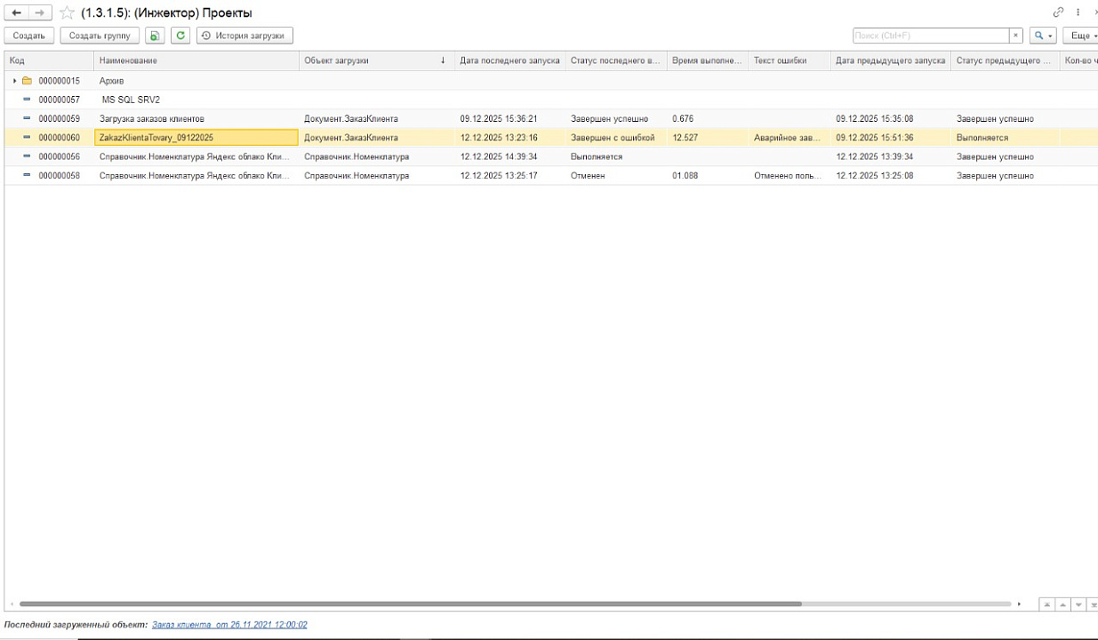 Команда Денвик предложила использовать Инжектор 1С — low-code инструмент для надёжной загрузки данных в 1С. Был реализован сценарий инкрементальной загрузки по расписанию.
