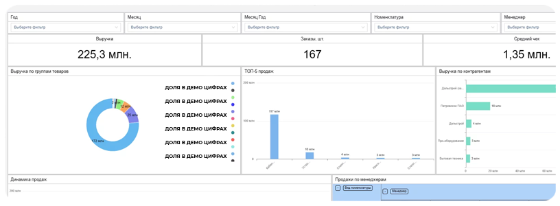 Он идеально подходит для тех, кто работает с 1С и Excel, и кому необходима полноценная работающая аналитика для получения полной картины бизнеса.
